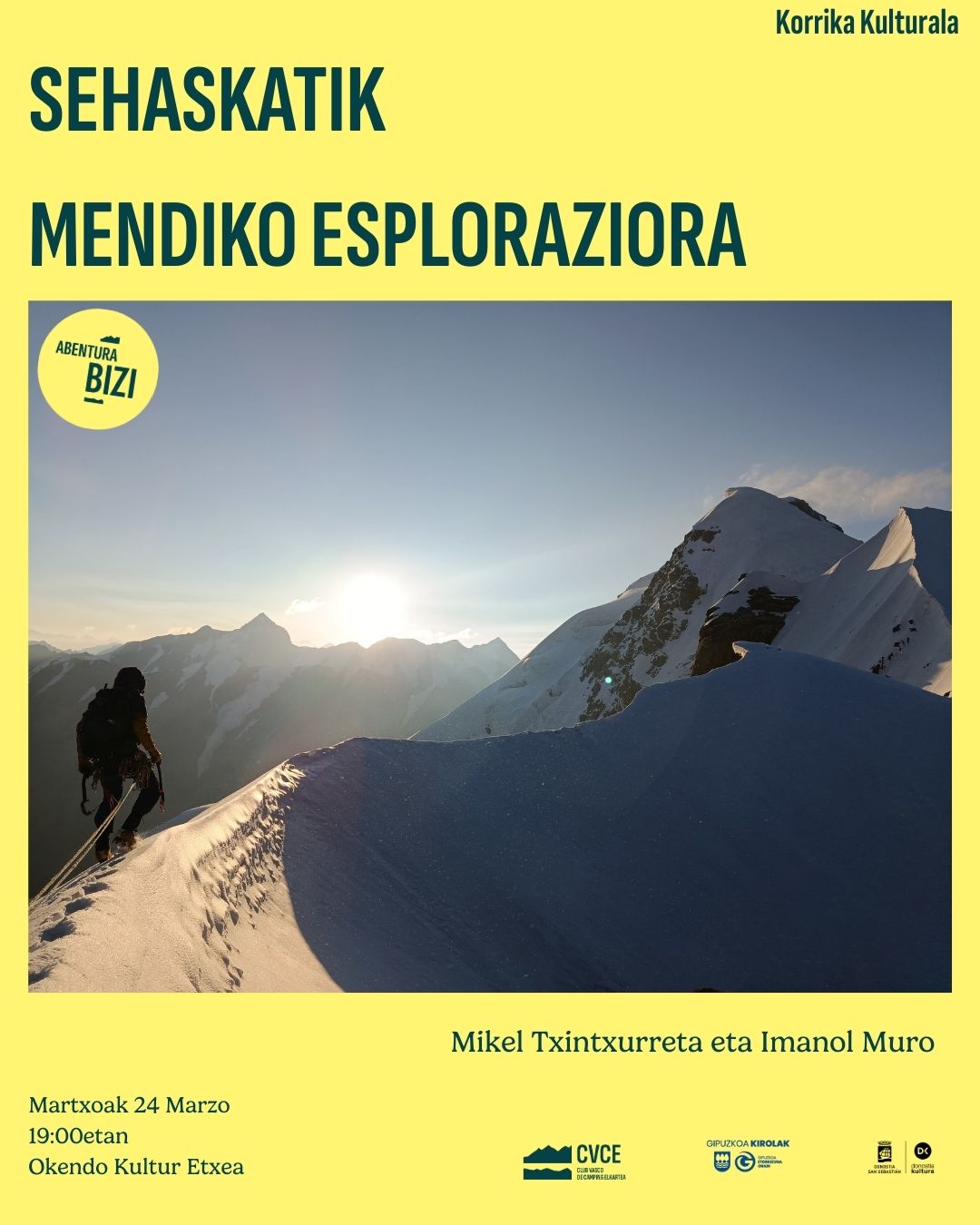 Sabremos acerca de la exploración realizada por los donostiarras Imanol Muro y Mikel Txintxurreta a la cordillera Dzhangart de Kirguistán, donde han escalado tres cumbres vírgenes de alrededor de 5000 m y han abierto una nueva vía en la cara norte del monte Tüsümbodüm. A pesar de las cambiantes condiciones meteorológicas y de la montaña, han pasado 20 días en este entorno inexplorado.